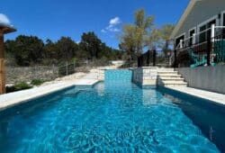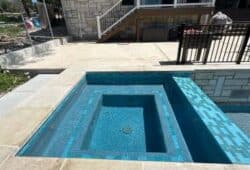 Pool only – no decking included. Three scuppers on the retaining wall with three bubblers on the tanning ledge.