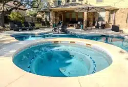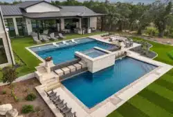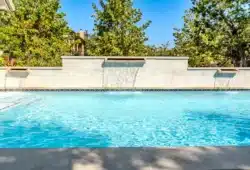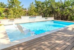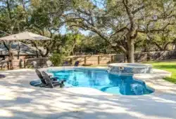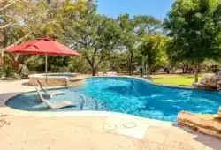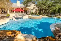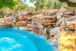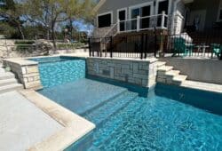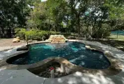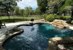 Pool only with decking, tanning ledge with two bubblers, and a rock water feature